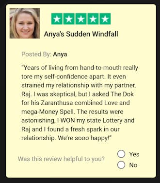 “My Ex stopped speaking to me months ago, but The Dok’s love spell brought him right back. He showed up at my door sobbing at 11.00am Sunday morning, saying he missed me every second - it really was the return I dreamed of!”